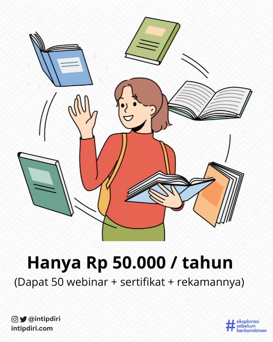 Hanya dengan Rp 50rb saja, kamu dapat akses ke 50 Webinar via Zoom (bukan rekaman) selama 1 tahun kedepan Hingga September 2025 !